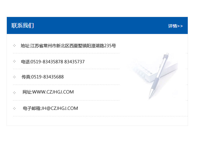 地址:常州市新北區友邦商務大廈1幢16、17層  電話:0519-85101652  傳真:0519-85112595  郵編:213022  網址:www_cz-jiayue_cn.xiaxingchina.com  郵箱:xiajifengaa@163.com